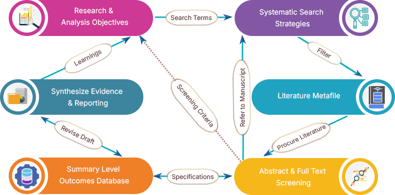 When decisions require speed without compromising on quality or analytical depth, our Targeted Literature reviews focus on specific, relevant sources and provide curated, high-impact evidence aligned to specific research questions as elaborated above for SLRs.
