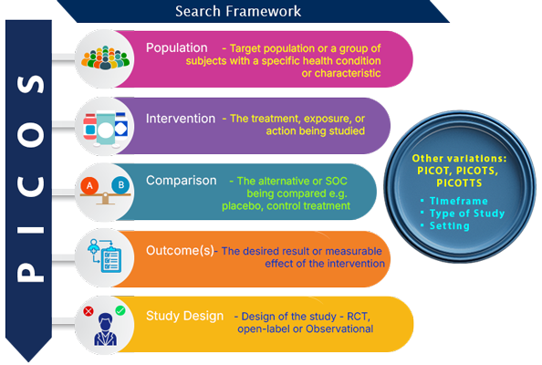 We build comprehensive PICO framework guided search strategies across multiple literature sources covering